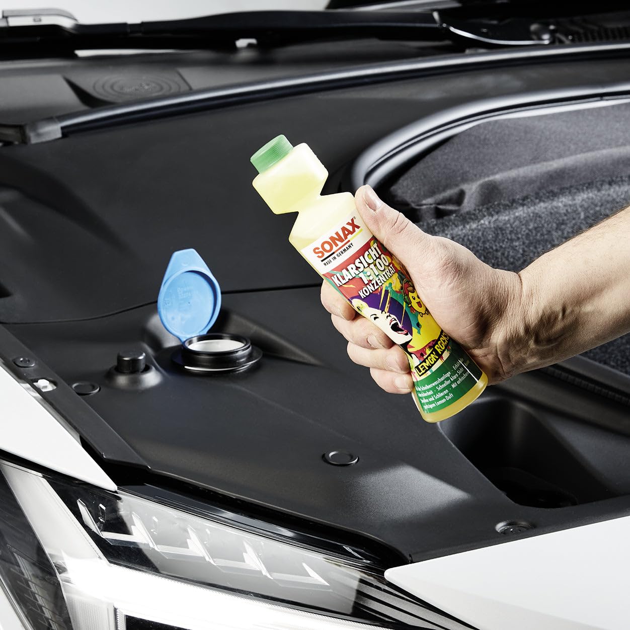 Safe viewing – within seconds. High activity cleaning concentrate with a fresh scent for glass washing in summer. The nanoparticles ensure that the cleaning speed is greatly improved. Glow films are removed from oil, soot, silicone, and other methods as well as other common methods. Suitable for fan nozzles. Compatible with sheet, rubber and plastic. It causes stress points and blind spots on lamp lenses. Also ideal for XENON headlights and clear glass look plastic lenses. With glycerol and anti-calc effect. Product yields 25ml 2.5L cleaning fluid.