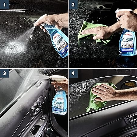 Featuring pure water technology, the especially powerful glass cleaner ensures an improved wetting of the glass surface. Thus, it efficiently removes greasy films, fingerprints and nicotine residue in the car’s interior as well as oil and soot films and insect residue on the car’s exterior, without leaving any residue. Special ingredients also reduce resoiling and support the self-cleaning of the outside of the glass when it rains. Also ideal for household use, for cleaning windows and mirrors. With Miami Race fragrance.