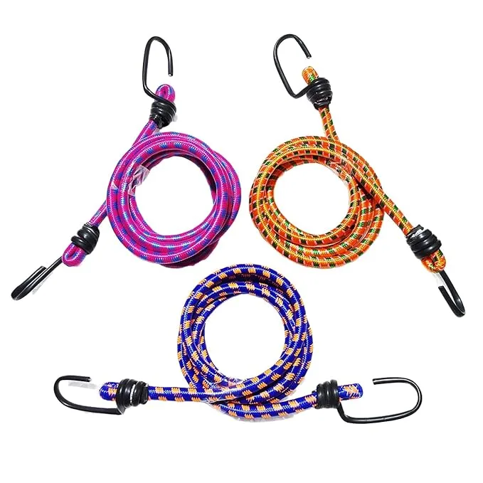 حبل بنجي مرن بطول 5 أقدام من MSAC، حزام أمتعة للدراجات/الدراجات النارية/الدراجة/السيارة مع خطافات معدنية 8 مم 5 أقدام، قابل للتمدد حتى 8 أقدام، مجموعة من 6 قطع