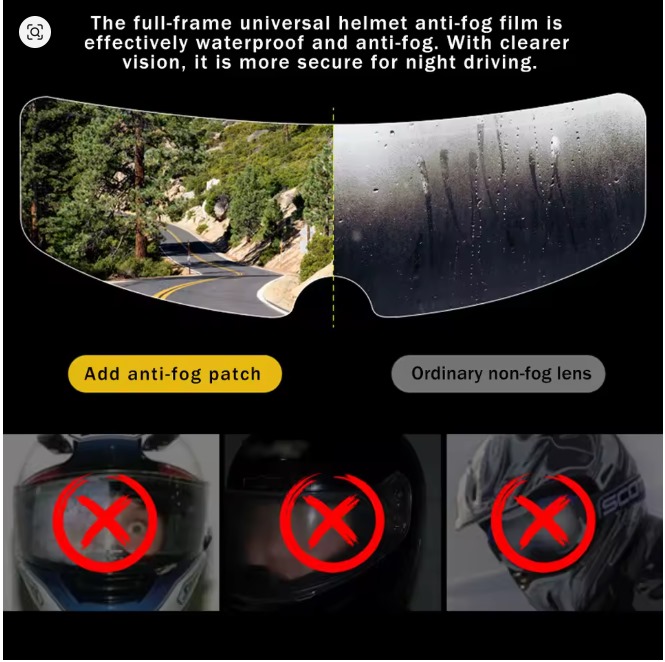 لاصق عالي الجودة يُركّب على زجاج خوذة الدراجة لمنع تكوّن الضباب وطرد مياه المطر. يساعد على الحفاظ على رؤية واضحة أثناء القيادة في الأجواء الباردة أو الماطرة أو الرطبة، من خلال تقليل تكاثف الرطوبة على سطح الزجاج. سهل التركيب ومتوافق مع معظم خوذ الدراجات، ويعزّز السلامة والراحة أثناء القيادة في مختلف الظروف الجوية.